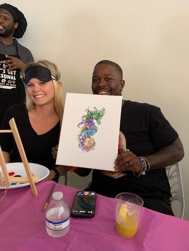 Eat, Sip & Blindfold Painting is a creative experience curated by Chef Alexander Mack — perfect for elevating your celebration. Whether you’re at an Airbnb, hosting at home, or planning a private function, this activity blends delicious food, laughter, teamwork, and friendly competition. Enjoy three curated courses with beverages while your partner guides you to paint inside the lines… blindfolded!